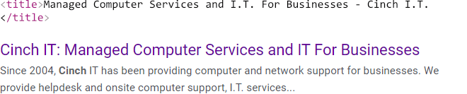在这里,谷歌将品牌名称移到了前面,后面是一个冒号(:),并且还将“IT”缩写为“IT”。在页面源代码中找不到此版本(带有“IT”)。