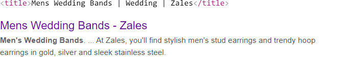 在其中一些情况下,原始 <title> 标记似乎只是反映了站点的信息架构。以 Zales 为例: