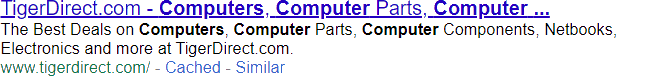 在大多数情况下,谷歌将显示标题改写为品牌名称。当然,“家”也可能太短了。这是一个较长的 <title> 标记的示例,其中相关性可能已经发挥作用: