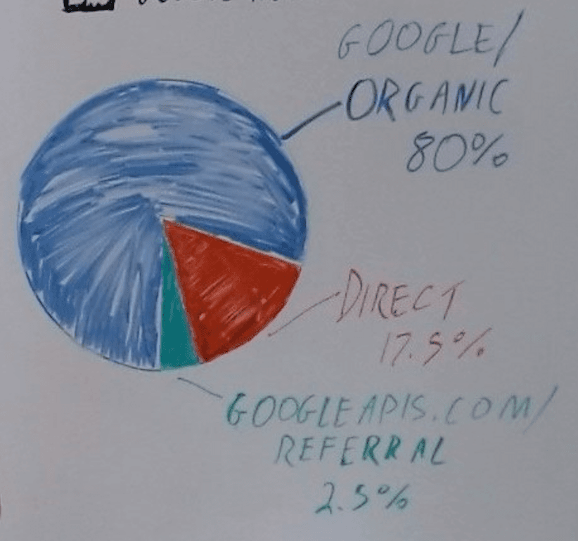 所以15%到20%。十七可能过于精确。然后你会得到一个小条子,它显示为这个 googleapis.com 推荐流量。现在,如果您以 googleapis.com 推荐作为来源和媒介获得任何东西,那么您肯定会获得一些发现流量,但这比您从这个绿色切片中想象的要多得多。这只是冰山一角。