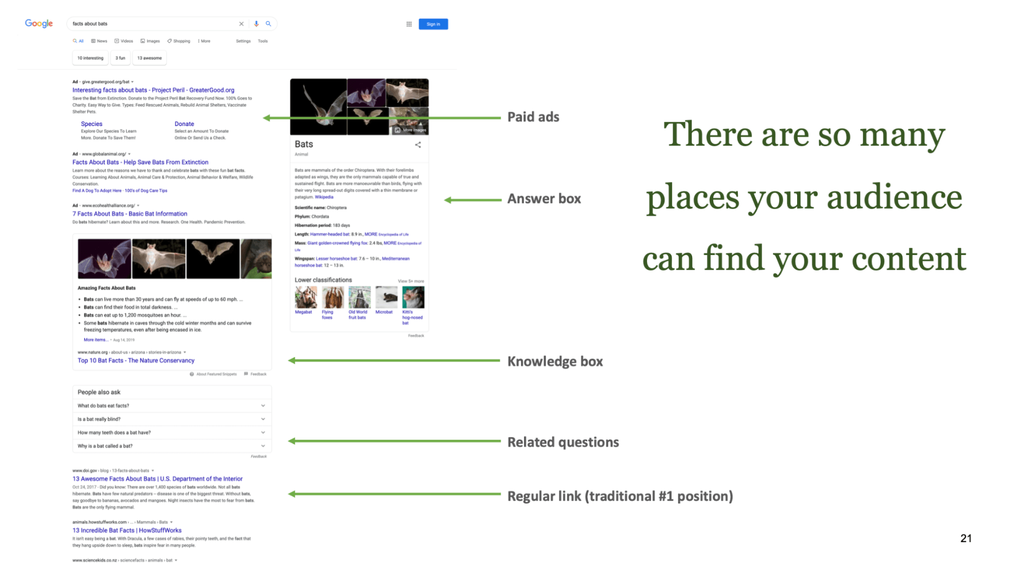 作为唯一的谷歌搜索引擎优化意味着说出来并断言你的知识。在我的头两个月内,我对组织中的任何人进行了一次谷歌 SEO 101 培训。我介绍了谷歌搜索引擎优化是什么,它对内容创建者意味着什么,打破了神话,介绍了 SERP 的外观,如何使用我们的 CMS 优化页面,并突出显示了已经做得很好的页面示例。在培训结束时,我为参与者提供了进行自己研究的步骤,并提供帮助任何人创建新内容的建议。(分发糖果也无妨。)