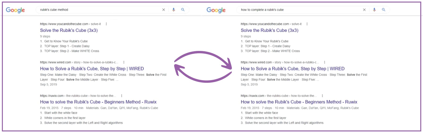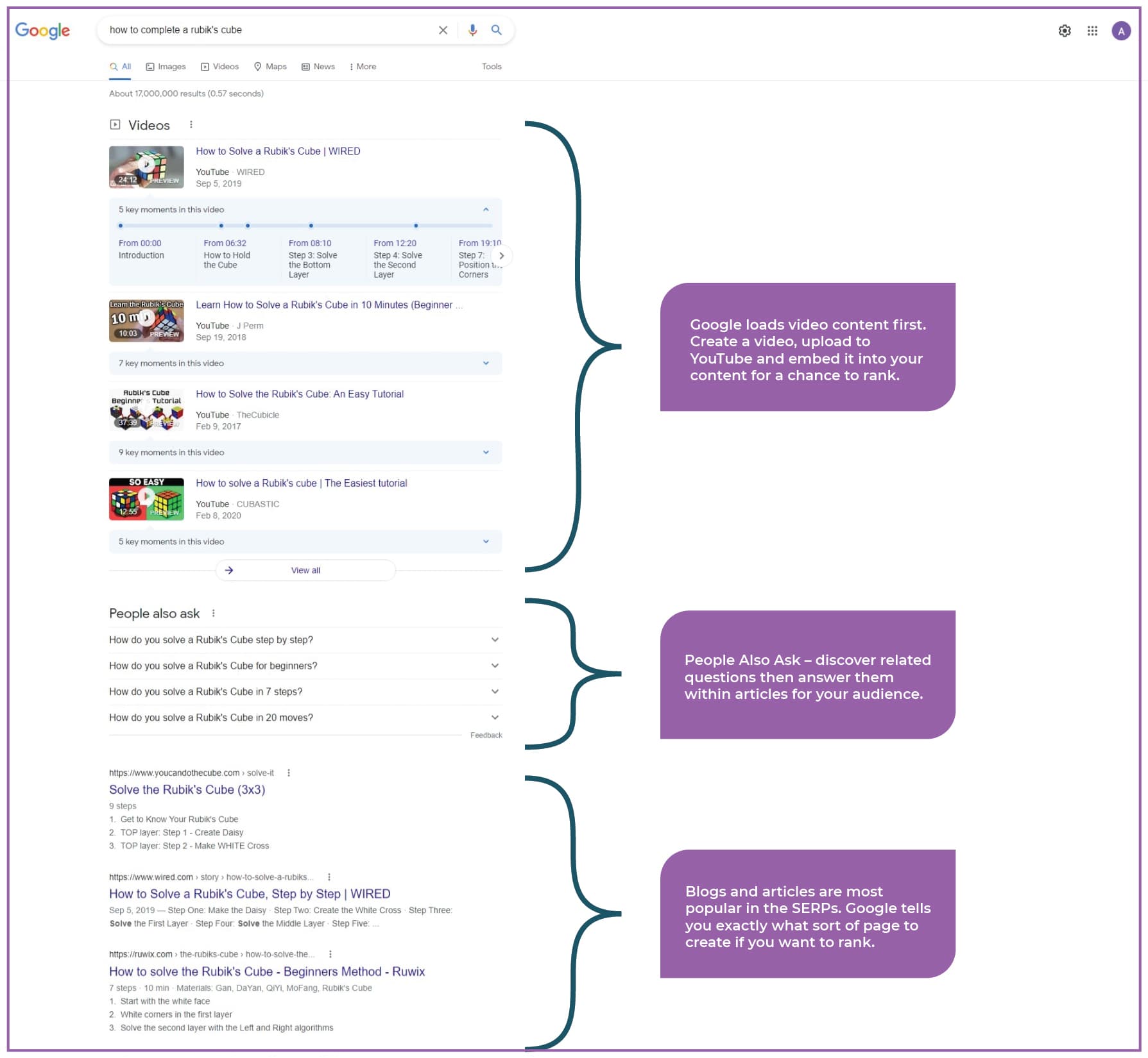 图为:Google SERP 关键字示例:“如何完成魔方”。