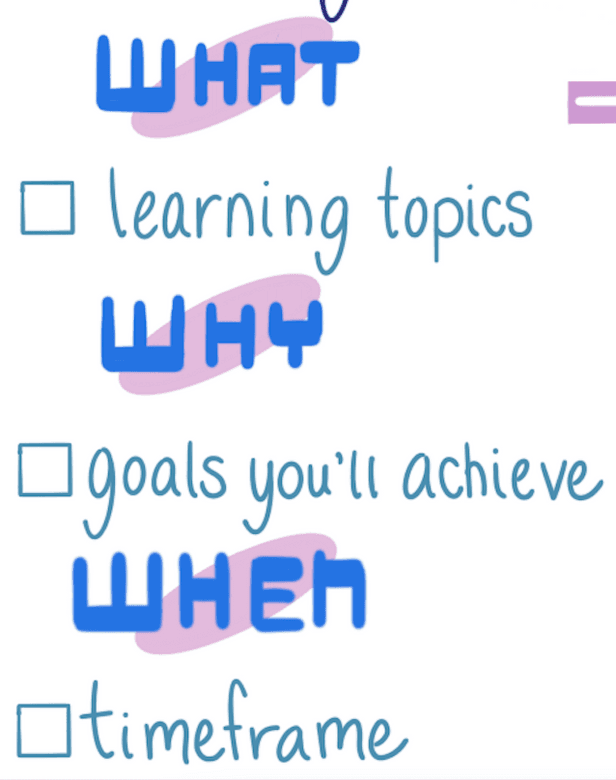 既然您已经概述了要涵盖的主题,让我们来探索您可以使用的资源。第一个很明显是时间,第二个是你的可用预算。那么,您一天、一周有多少时间可用,还有多少时间可以让您完成学习体验?然后,您能否将其融入您当前的角色,也许作为一项延伸任务,您如何与您的同龄人进行对话?然后探索您是否有可用的专业发展预算。