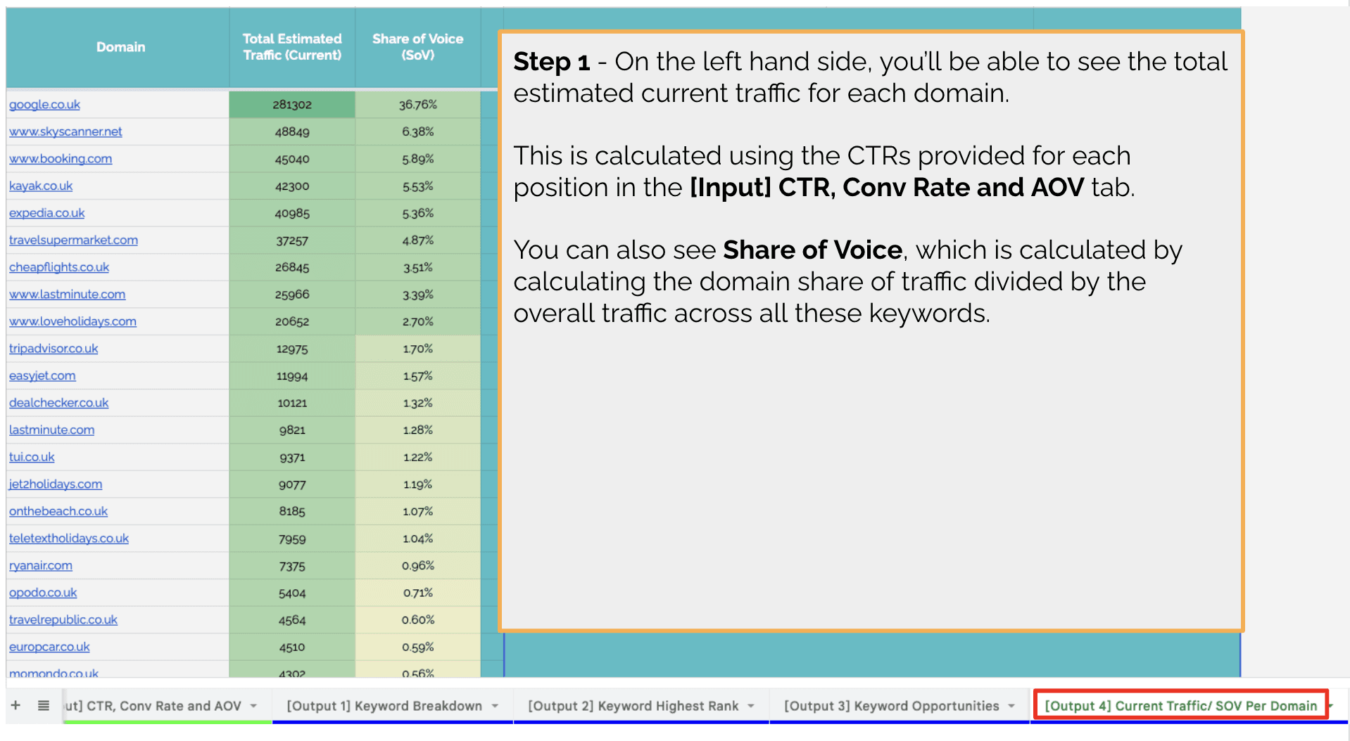 第 8 阶段:输出 4 – 每个域的预测流量/SOV