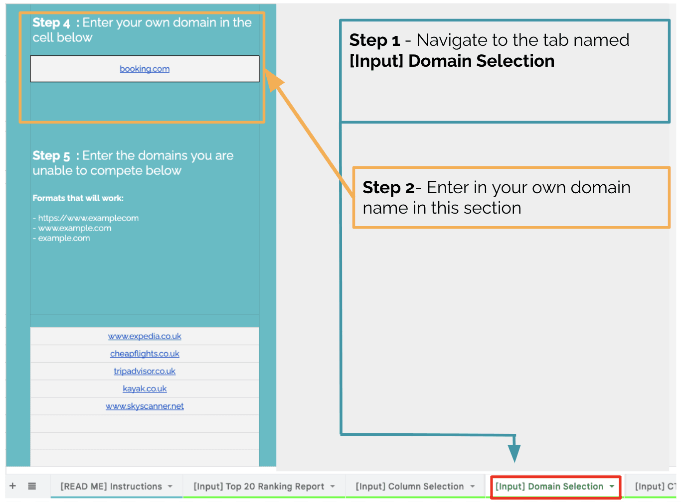 第一步是输入您的域。本例中的示例是 booking.com
