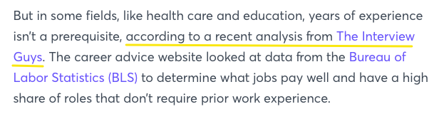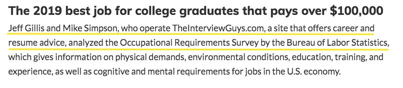 该研究得到了 CNBC、读者文摘、MarketWatch 等媒体的报道,获得了极高价值的 dofollow 链接。但是看看文章中是如何提到 The Interview Guys 的: