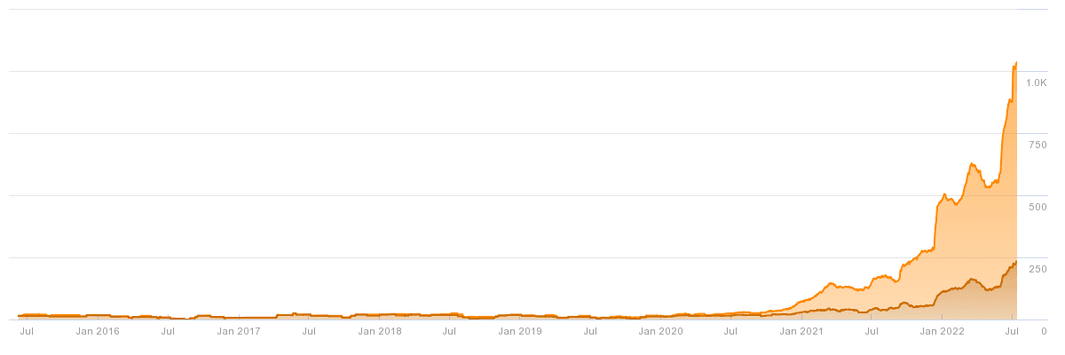 我们于 2020 年开始与该客户合作。实际上,根据 Ahrefs 的数据,在 2021 年之前,前 10 名中只有少数关键字。现在已经超过1,000。最重要的是,因为我们一直与客户密切合作,我们知道我们正在定位正确的关键字。