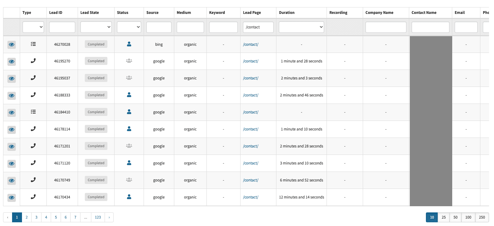 正如您在下图中所见,电话是 AFG 客户最喜欢的联系方式,自从我们将网站连接到软件以来,它占用了 1,229 条潜在客户中的 1,025 条 (83%)。其余的来自网站上不同页面的联系表格。