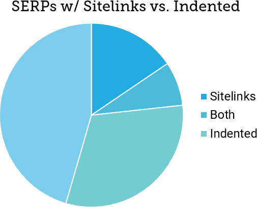 10 月 12 日,我们数据集中 23% 的 SERP 具有扩展附加链接,39% 具有缩进结果,大约 8% 具有这两种功能。显然,这是两个具有独特意图的不同特征。