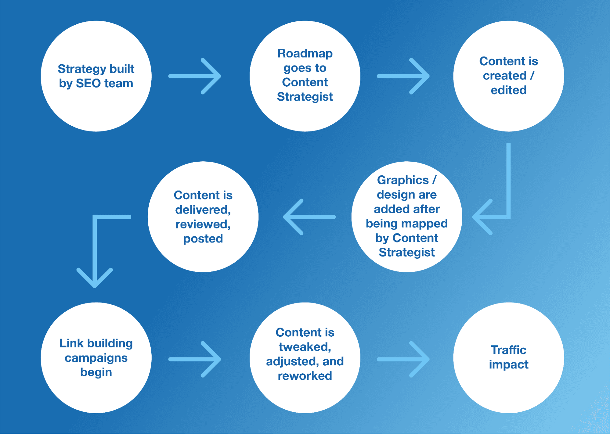 在查看内容流程时,谷歌 SEO 团队需要支持的领域有很多。无论谁实际创建内容,谷歌 SEO 团队都需要提供策略和方向。