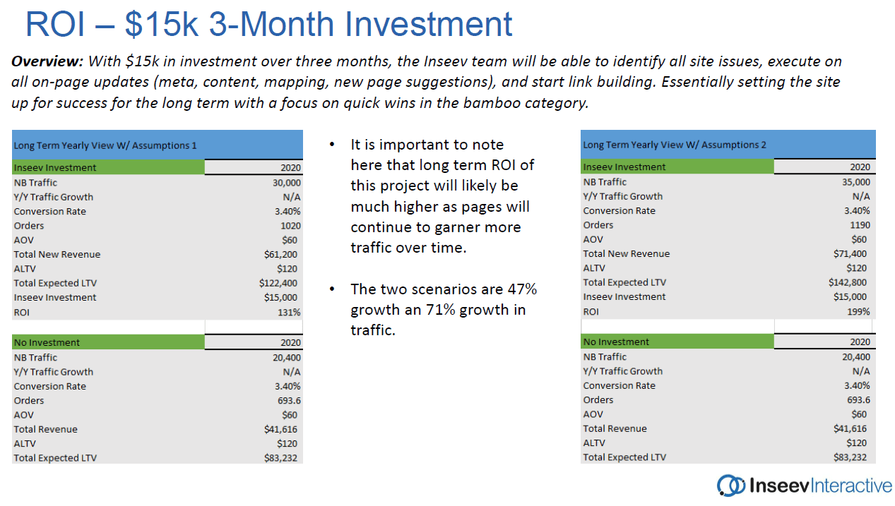与其他可以预测投资回报率的营销渠道不同,很难预测谷歌搜索引擎优化的增长。我们如何提供统计证据证明我们的策略将成为成功的驱动力?虽然没有完美的科学,但我们将我们的方法分解如下: