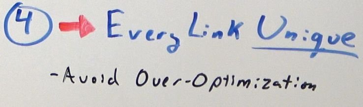 我认为这更容易,只需让您添加的每个新链接都独一无二。让它自然。使用自然的话。我倾向于完全避免完全匹配的锚文本。这样我就可以避免一些很容易做到的事情,那就是过度优化。如果您是一个没有太多权限的新网站,当 Google 认为您试图操纵您的排名时,他们会制定流程来检测过度优化。